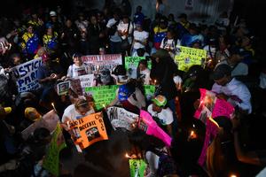 (250403) -- CARACAS, 3 abril, 2025 (Xinhua) -- Imagen del 2 de abril de 2025 de familiares de migrantes deportados...