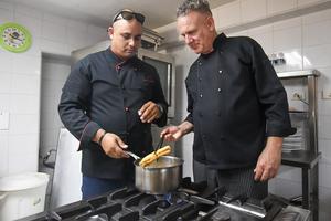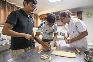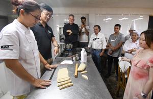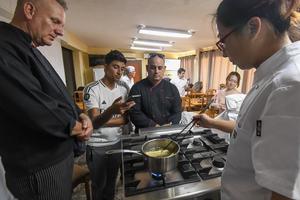 (250403) -- LA HABANA, 3 abril, 2025 (Xinhua) -- Imagen del 2 de abril de 2025 de chefs cubanos elaborando...