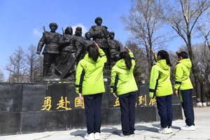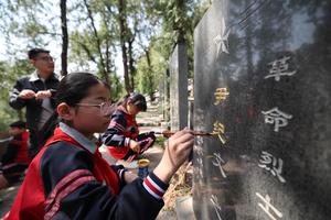 (250403) -- BEIJING, 3 abril, 2025 (Xinhua) -- Estudiantes rinden tributo a los mártires en un cementerio de mártires, en...