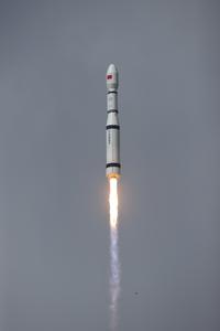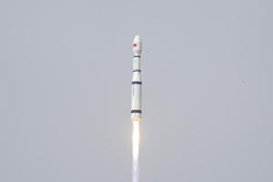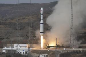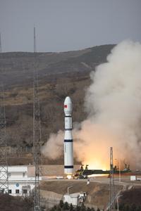 (250403) -- TAIYUAN, 3 abril, 2025 (Xinhua) -- Un cohete portador Gran Marcha-6 que transporta el satélite Tianping-3A 02 despega...