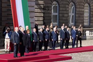 (250403) -- BUDAPEST, 3 abril, 2025 (Xinhua) -- El primer ministro húngaro, Viktor Orban (d-frente), ofrece una ceremonia de bienvenida...