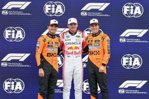 (250405) -- SUZUKA, 5 abril, 2025 (Xinhua) -- El piloto neerlandés de la escudería Red Bull, Max Verstappen (c), posa...