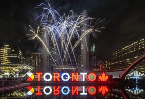 (250406) -- TORONTO, 6 abril, 2025 (Xinhua) -- Imagen del 5 de abril de 2025 de un espectáculo de fuegos...