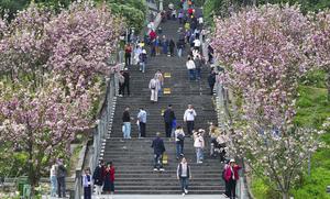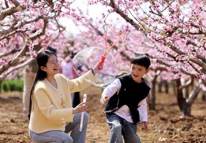 (250406) -- BEIJING, 6 abril, 2025 (Xinhua) -- Turistas disfrutan de su tiempo libre en un jardín, en la ciudad...