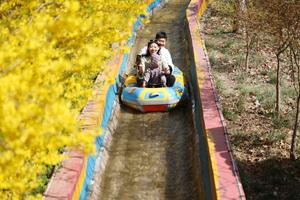 (250406) -- BEIJING, 6 abril, 2025 (Xinhua) -- Personas se deslizan en un inflable, en la aldea de Zhuquan, en...