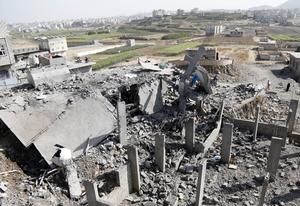 (250407) -- SANA, 7 abril, 2025 (Xinhua) -- Imagen del 7 de abril de 2025 de una casa destruida por...