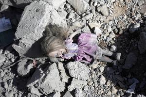 (250407) -- SANA, 7 abril, 2025 (Xinhua) -- Una muñeca es vista entre los escombros de una casa destruida por...