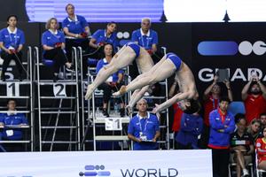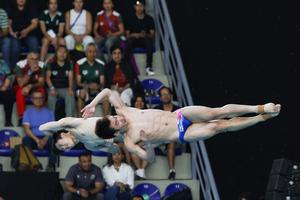 (250406) -- JALISCO, 6 abril, 2025 (Xinhua) -- Hu Yukang y Zheng Jiuyuan, de China, compiten durante la final de...