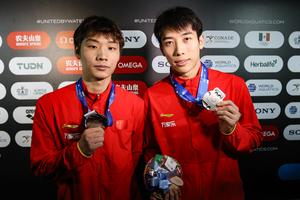 (250406) -- JALISCO, 6 abril, 2025 (Xinhua) -- Hu Yukang y Zheng Jiuyuan, de China, muestran sus medallas de plata...