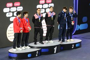 (250406) -- JALISCO, 6 abril, 2025 (Xinhua) -- Hu Yukang y Zheng Jiuyuan (i), de China, y Osmar Olvera y...