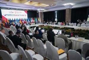 (250407) -- TEGUCIGALPA, 7 abril, 2025 (Xinhua) -- Participantes asisten a la Reunión Ordinaria de Coordinadores Nacionales previo a la...
