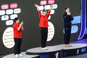 (250406) -- GUADALAJARA, 6 abril, 2025 (Xinhua) -- Imagen del 5 de abril de 2025 de la medallista de oro...