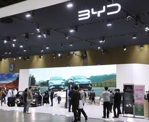 (250408) -- GOYANG, 8 abril, 2025 (Xinhua) -- Visitantes observan los vehículos en el estand del fabricante chino de vehículos...