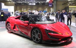 (250408) -- GOYANG, 8 abril, 2025 (Xinhua) -- Visitantes observan un automóvil deportivo en el estand del fabricante chino de...