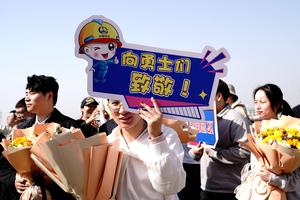 (250408) -- SHANGHAI, 8 abril, 2025 (Xinhua) -- Personas saludan al rompehielos de investigación chino Xuelong, o Dragón de Nieve,...