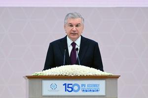 (250408) -- TASHKENT, 8 abril, 2025 (Xinhua) -- Imagen del 7 de abril de 2025 del presidente uzbeko, Shavkat Mirziyoyev,...
