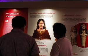 (250408) -- LIMA, 8 abril, 2025 (Xinhua) -- Personas visitan la exposición "El rol de la mujer en la civilización...