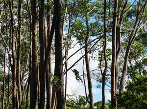 (250408) -- ANTANANARIVO, 8 abril, 2025 (Xinhua) -- Imagen del 29 de marzo de 2025 de un lémur saltando de...