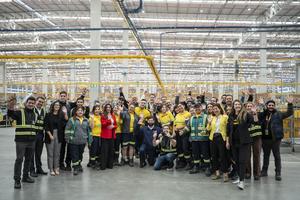 (250409) -- SANTIAGO, 9 abril, 2025 (Xinhua) -- Imagen cedida por la Presidencia de Chile del presidente chileno, Gabriel Boric (c-abajo), posando para una fotografía durante una visita al Centro de Distribución y Almacenamiento de Mercado Libre, en Colina, en el norte de la región Metropolitana de Santiago, capital de Chile, el 9 de abril de 2025. La multinacional argentina Mercado Libre anunció el miércoles que inyectará más de 550 millones de dólares este 2025 en el marco del Plan de Aporte Económico, un 18 por ciento más que el año anterior, con el fin de potenciar el comercio electrónico y sus servicios financieros, entre otros fines. (Xinhua/Presidencia de Chile) (ra) (ah) (ce)