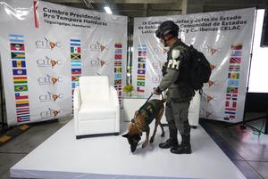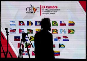 (250409) -- TEGUCIGALPA, 9 abril, 2025 (Xinhua) -- Una persona permanece en la sede de la IX Cumbre de Jefas...