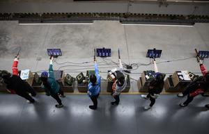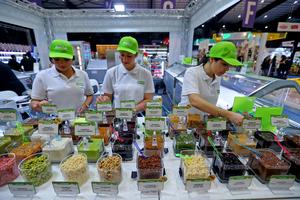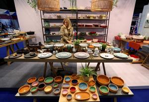 (250409) -- BEIRUT, 9 abril, 2025 (Xinhua) -- Imagen del 8 de abril de 2025 de expositoras preparando exhibiciones de...