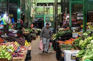 (250409) -- VALPARAISO, 9 abril, 2025 (Xinhua) -- Una persona realiza compras en el mercado El Cardonal, en la ciudad...