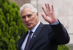 (250409) -- TEGUCIGALPA, 9 abril, 2025 (Xinhua) -- El presidente cubano, Miguel Díaz-Canel, saluda a su llegada a la IX...
