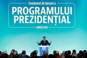 (250409) -- BUCAREST, 9 abril, 2025 (Xinhua) -- Crin Antonescu, candidato de la coalición gobernante a la presidencia de Rumanía, hablando a la audiencia durante la presentación de su programa presidencial, en Bucarest, Rumania, el 9 de abril de 2025. La campaña para la elección presidencial de Rumanía comenzó oficialmente el 4 de abril, con 11 candidatos compitiendo por el máximo cargo del país. La campaña se extenderá hasta el 3 de mayo, antes de la primera ronda de votación programada para el 4 de mayo. (Xinhua/Cristian Cristel) (ah) (vf)