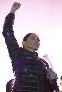 (250413) -- QUITO, 13 abril, 2025 (Xinhua) -- La candidata a la Presidencia de Ecuador, Luisa González (frente), del movimiento...