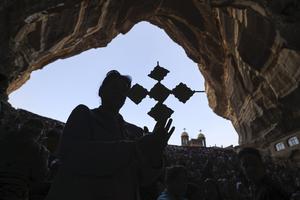 (250413) -- EL CAIRO, 13 abril, 2025 (Xinhua) -- Cristianos asisten a una misa llevada a cabo para celebrar el Domingo de Ramos en la Iglesia de la Cueva, en El Cairo, Egipto, el 13 de abril de 2025. (Xinhua/Ahmed Gomaa) (oa) (ah)