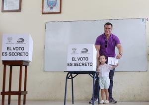 (250413) -- OLON, 13 abril, 2025 (Xinhua) -- Imagen cedida por la Presidencia de Ecuador del presidente ecuatoriano y candidato...