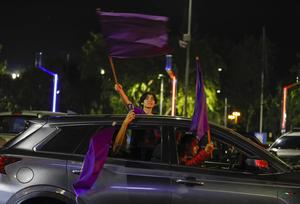 (250413) -- QUITO, 13 abril, 2025 (Xinhua) -- Simpatizantes del presidente ecuatoriano y candidato a la reelección, Daniel Noboa, festejan...