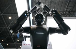 (250414) -- HAIKOU, 14 abril, 2025 (Xinhua) -- Un robot realiza un saludo tradicional de "puño y palma" en la...