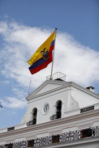 (250414) -- QUITO, 14 abril, 2025 (Xinhua) -- Una bandera nacional ecuatoriana ondea en el Palacio de Carondelet, en la...