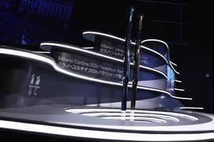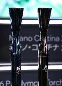 (250414) -- OSAKA, 14 abril, 2025 (Xinhua) -- Las antorchas para los Juegos Olímpicos y Paralímpicos de Invierno Milano Cortina...