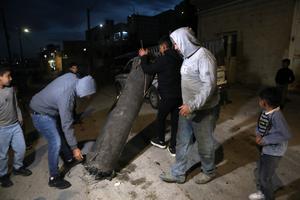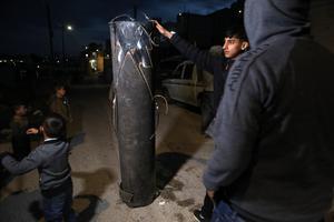 (250414) -- DURA, 14 abril, 2025 (Xinhua) -- Imagen del 13 de abril de 2025 de palestinos reuniéndose alrededor de...