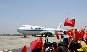(250414) -- HANOI, 14 abril, 2025 (Xinhua) -- Personas dan la bienvenida al secretario general del Comité Central del Partido...
