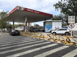 (250412) -- BEIJING, 12 abril, 2025 (Xinhua) -- Una estación de servicio está cerrada temporalmente debido a los fuertes vientos,...