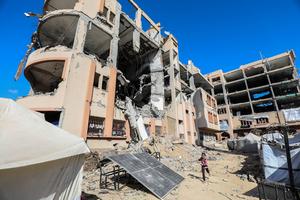 (250412) -- GAZA, 12 abril, 2025 (Xinhua) -- Imagen del 11 de abril de 2025 de palestinas desplazadas vistas en...