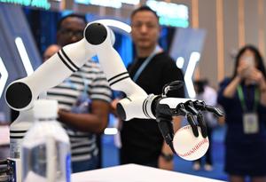 (250416) -- GUANGZHOU, 16 abril, 2025 (Xinhua) -- Imagen del 15 de abril de 2025 de un brazo robótico demostrando funciones diestras de la mano en la Zona de Robots de Servicio durante la 137 edición de la Feria de Importación y Exportación de China, también conocida como la Feria de Cantón, en Guangzhou, en la provincia de Guangdong, en el sur de China. La 137 edición de la Feria de Cantón, se inauguró el martes, con el número de expositores de exportación superando los 30.000 por primera vez en la historia de este famoso evento. La primera fase de la Feria de Cantón, celebrada del 15 al 19 de abril, se centró en la fabricación avanzada y por primera vez agregó una zona especial para robots de servicio, mostrando los últimos logros de los esfuerzos de desarrollo de la inteligencia artificial de China. (Xinhua/Deng Hua) (ah) (ra) (ce)