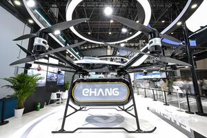 (250415) -- HAIKOU, 15 abril, 2025 (Xinhua) -- Imagen del 14 de abril de 2025 de un dron logístico visto...