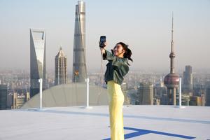 (250415) -- SHANGHAI, 15 abril, 2025 (Xinhua) -- Imagen del 14 de abril de 2025 de una visitante tomándose una...