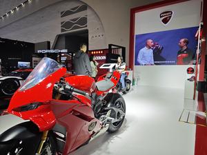 (250416) -- HAIKOU, 16 abril, 2025 (Xinhua) -- Imagen del 14 de abril de 2025 de visitantes observando motocicletas Ducati...