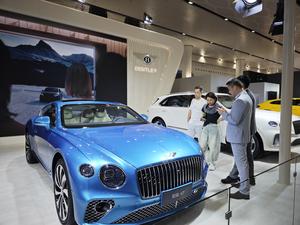 (250416) -- HAIKOU, 16 abril, 2025 (Xinhua) -- Imagen del 15 de abril de 2025 de visitantes observando un automóvil...