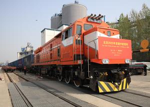 (250416) -- BEIJING, 16 abril, 2025 (Xinhua) -- Un tren de carga China-Europa con destino a Moscú, Rusia, espera para...