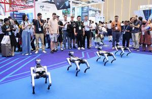 (250416) -- GUANGZHOU, 16 abril, 2025 (Xinhua) -- Imagen del 15 de abril de 2025 de compradores observando el robot...