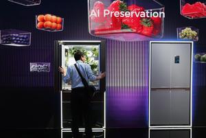 (250416) -- GUANGZHOU, 16 abril, 2025 (Xinhua) -- Un comprador conoce sobre un refrigerador inteligente durante la 137ª edición de...