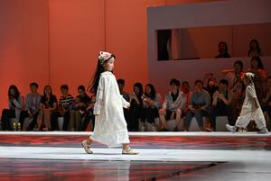 (250416) -- HAIKOU, 16 abril, 2025 (Xinhua) -- Niñas muestran ropa de marcas chinas durante un desfile de modas en...