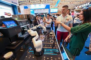 (250416) -- GUANGZHOU, 16 abril, 2025 (Xinhua) -- Imagen del 15 de abril de 2025 de compradores extranjeros experimentando el...
