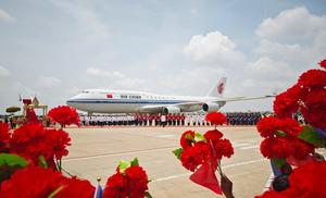(250417) -- PHNOM PENH, 17 abril, 2025 (Xinhua) -- El presidente chino, Xi Jinping, llega a Phnom Penh para una...
